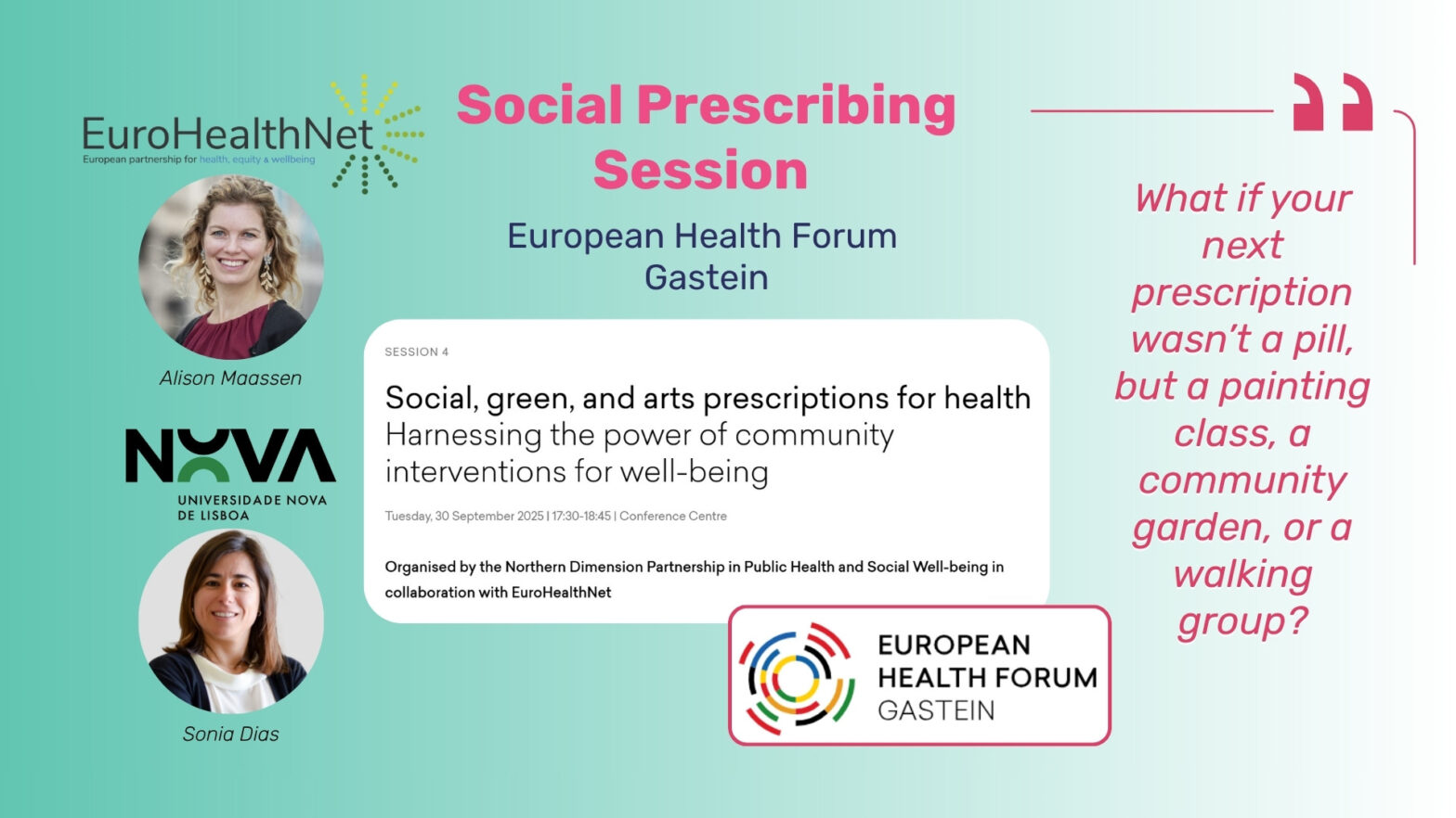 October 2025 – At the currently ongoing European Health Forum Gastein (EHFG 2025), yesterday’s session on social, green, and arts prescriptions focused on how community-based approaches such as creative workshops, green spaces, and social activities can strengthen health systems and promote equity. Alison Maassen (EuroHealthNet) moderated the discussion,…